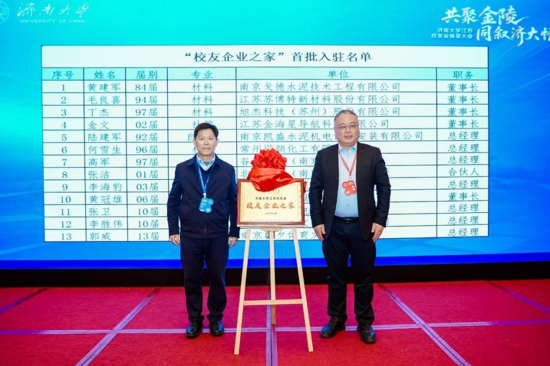 大会审议并通过了修订后的《济南大学江苏校友会章程》《济南大学江苏校友会第二届理事会名单》以及选举产生理事长、会长、常务副会长、副会长、理事、秘书长、副秘书长等理事会成员。黄建军当选为江苏校友会第二届理事会理事长,1994届水泥专业校友、江苏苏博特新材料股份有限公司董事长毛良喜当选为第二届江苏校友会会长。1992届自动化专业校友、南京凯盛水泥设备安装有限公司总经理陆建军,1997届水泥专业校友、旭杰科技(苏州)股份有限公司董事长丁杰,2001届社区康复专业校友、江苏金海星导航科技有限公司董事长金文当选为第二届江苏校友会常务副会长。张洁当选为第二届江苏校友会秘书长。
